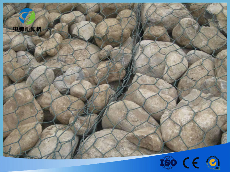 将引线石笼网装到带有重型六角网的箱笼中,并在项目现场将一定规格的石材填充到笼中,以满足一定的要求,以形成自渗透,柔性,生态保护的结构 结构体。