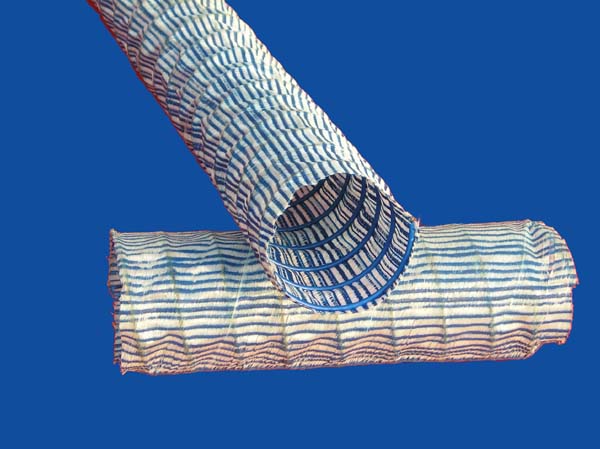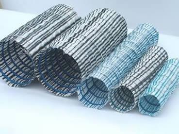将涂覆PVC的钢丝加工成螺旋状作为骨架,在骨架上缠绕热轧布而成,具有通过整体的周身全方位过滤并快速有效排除地下水,渗透率高,排水量大,取代传统的聚氯乙烯打孔管渗水。