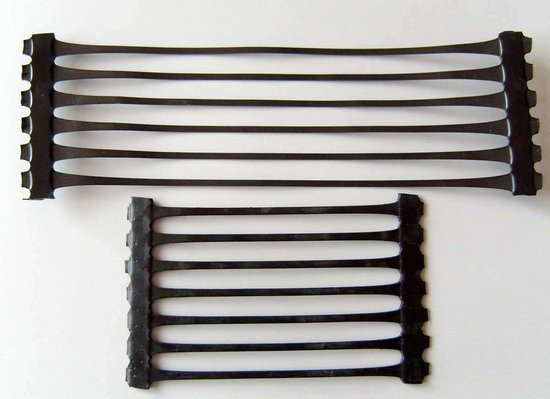 单向拉伸塑料土工格栅(geogrid)是一种主要的土工合成材料,与其他土工合成材料相比,它具有独特的性能与功效。常用作加筋土结构的筋材或复合材料的筋材等。它是用聚丙烯、聚乙烯等高分子聚合物经热塑或模压而成的二维网格状,当作为土木工程使用时,称为单向拉伸土工格栅。