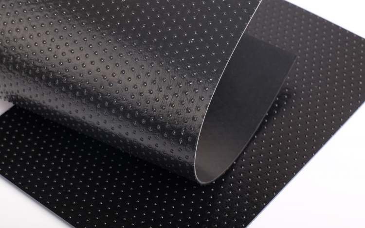 膜面柱点由特制模型压辊压延而成,柱点分布均匀,美观,提高摩擦系数,且膜面正反两面可由不同材质,不同颜色热融成一体,在工程应用中可根据地质条件、工程要求设置产品正反面。