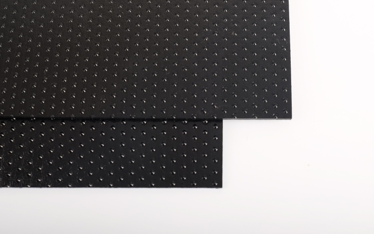 膜面柱点由特制模型压辊压延而成,柱点分布均匀,美观,提高摩擦系数,且膜面正反两面可由不同材质,不同颜色热融成一体,在工程应用中可根据地质条件、工程要求设置产品正反面。