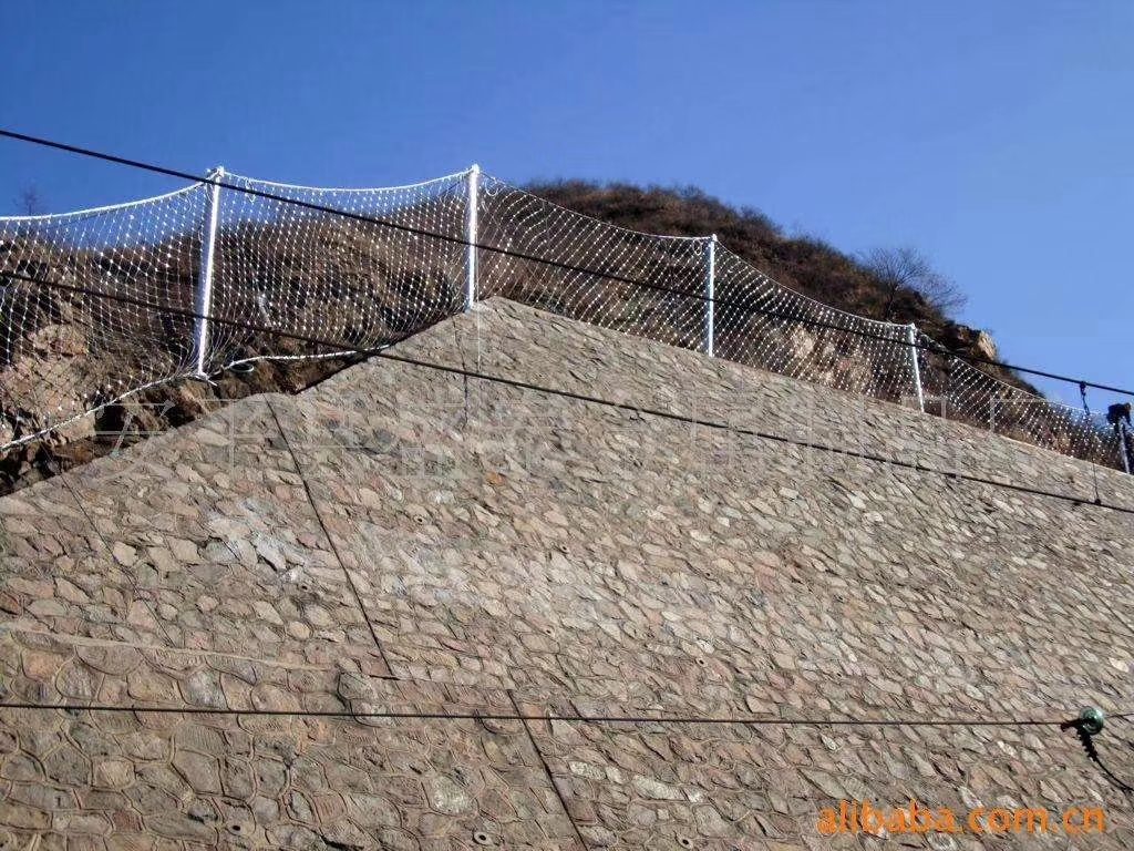 SNS被动防护系统采用高强度热镀锌钢丝绳、钢丝网,不低于AB级的防腐处理,其防腐寿命根据环境条件的不同一般可达到30-50年不等。被动防护系统主要对边坡飞石、落石、雨水过多造成的坡体坍塌,防护能量级内的滑坡、泥石流等防治,减轻灾害的受损程度,其系统与相结合的消能装置、支撑柱、支撑绳及拉锚绳等,拦截能量可达到500KJ—1000KJ。