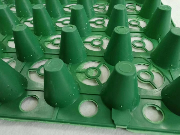 蓄排水板:蓄水型排水板采用高密度聚乙烯(HDPE)或聚丙烯(PP)经热熔注塑定型而成的一种既能营造具有一定立体空间支撑刚度的排水通道,又可以集排水、蓄水功能于一体的新型排水环保建筑材料;它同时具备了蓄水、排水、透气、保温隔热。