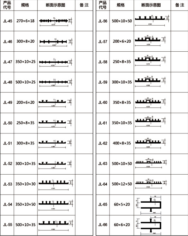 背贴式橡胶止水带的常用规格: