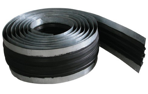我厂生产的中埋式钢边止水带是以镀锌钢带和天然橡胶原料所组成的组合而成的一种防水产品,它采用的橡胶主体材料为耐老化性能优良的天然橡胶及各种防老剂,具有特强的自粘性;具有夏季高温不流淌,冬季低温不发脆;并具有优异的耐水、耐酸碱和耐老化性能;使用寿命长,产品本身无毒,对环境良好的特点。
