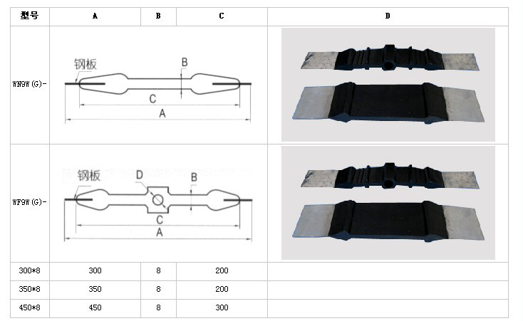 钢边橡胶止水带的常用规格350mm*8mm,350mm*10mm