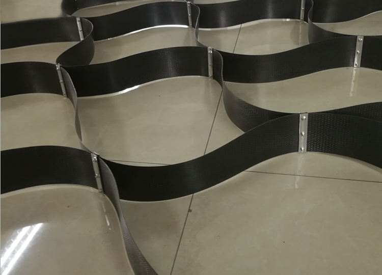 高强度土工格室:整供窗内为单根筋制作土工格室是由高强度的HDPE宽带,经过强力焊接而形成的一片网状格室结构。它伸缩自如,运输时可缩叠起来,使用时张开并又充填土石、或混凝土料,构成具有强大侧向限制和大刚度的结构体。它可用来做成垫层,处理软弱地基增大地基的承载能力,也可铺设在坡面上构成坡面防护结构,还可以用来建造支档结构等。这种材料施工也很方便格室高度为:5--50cm,网格尺寸根据客户需求制作。技术参数:抗拉强度≥150MPa,延伸率≤15%。