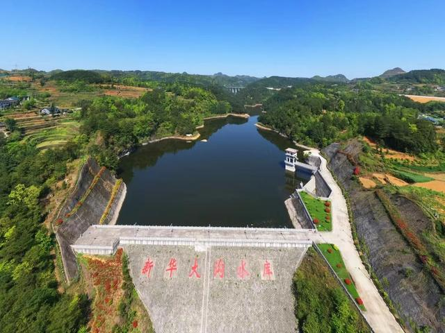 新华大沟水库是贵州省及西南五省重要骨干水源工程,水库供水范围涉及金鼎山镇黄钟村、莲池村、后庄村、银江村、牛蹄社区等区域,有效解决了5000多亩农田灌溉和2.1万人的饮水安全问题。