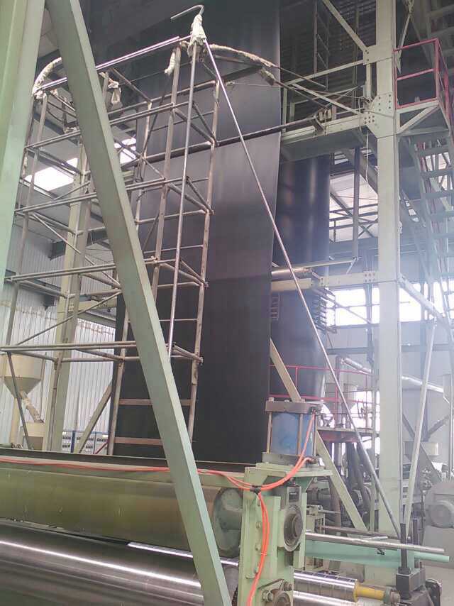 HDPE土工膜(防渗膜)是指将以(中)高密度聚乙烯树脂为原料,通过过设备模具加热融化再吹成膜的一种塑料加工工艺,通常采用将聚合物挤出成型管状膜坯,在较好的熔体流动状态下通过高压空气将管膜吹胀到所要求的厚度,经冷却定型后成型的膜。